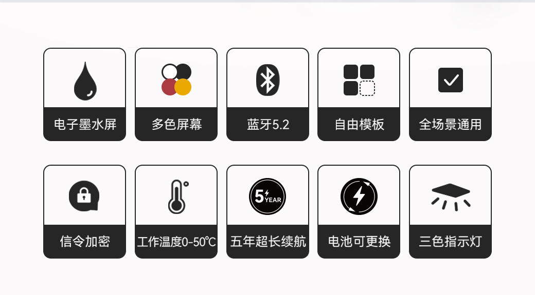 天波信息自創(chuàng)立以來始終致力于新零售產(chǎn)品的迭代創(chuàng)新,不斷提升產(chǎn)品布局與設計水平,擁有卓越的市場表現(xiàn)和行業(yè)認可。如今,天波信息推出的最新一代電子價簽,采用電子墨水屏、多色屏幕指示燈和藍牙 5.2無線連接,更快連接到基站和云平臺,滿足更多不同場景的營銷需求,電子標簽特有的低功耗設計還能可實現(xiàn)長達5年的電池續(xù)航壽命,對比傳統(tǒng)紙更環(huán)保耐用。