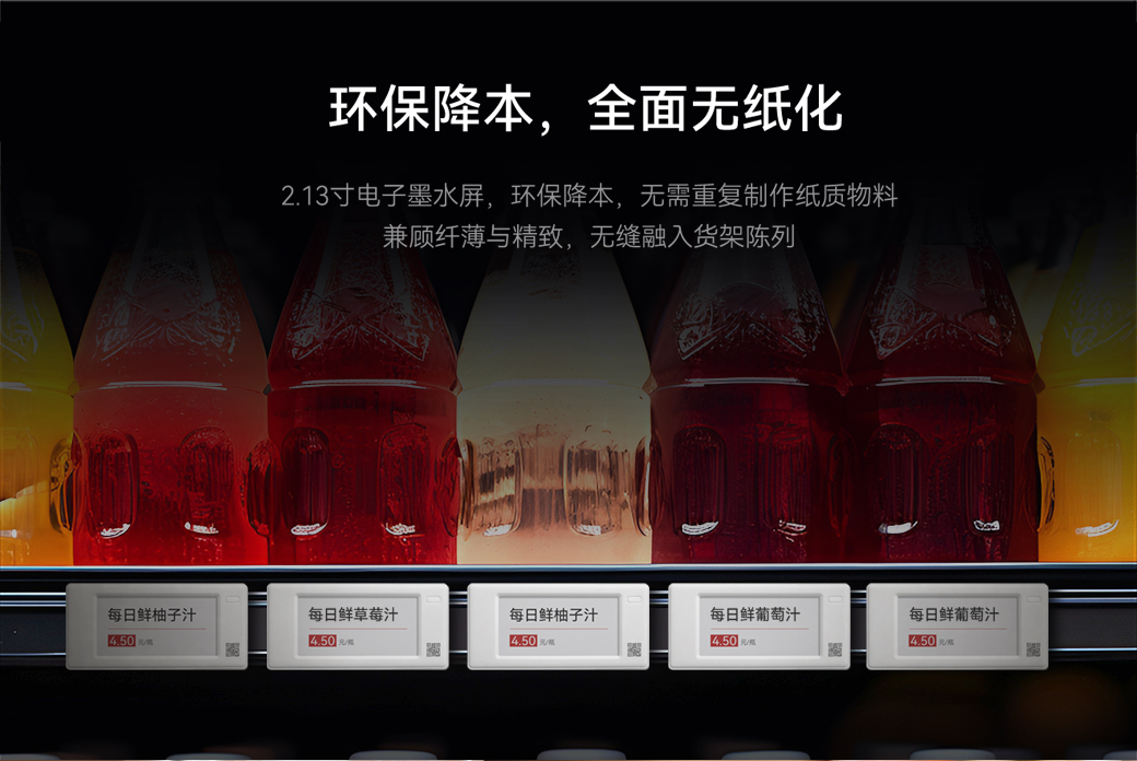 天波商場條碼電子標簽采用2.13寸電子墨水屏,以電子紙?zhí)鎿Q傳統(tǒng)紙張,不再需要操作紙質(zhì)標簽從印刷到物理替換的過程;零售商店越大,所節(jié)省的時間和資金就越多,有效降低總體資源消耗,助力零售門店節(jié)能減排,提高工作效率,實現(xiàn)可持續(xù)化的商業(yè)模式